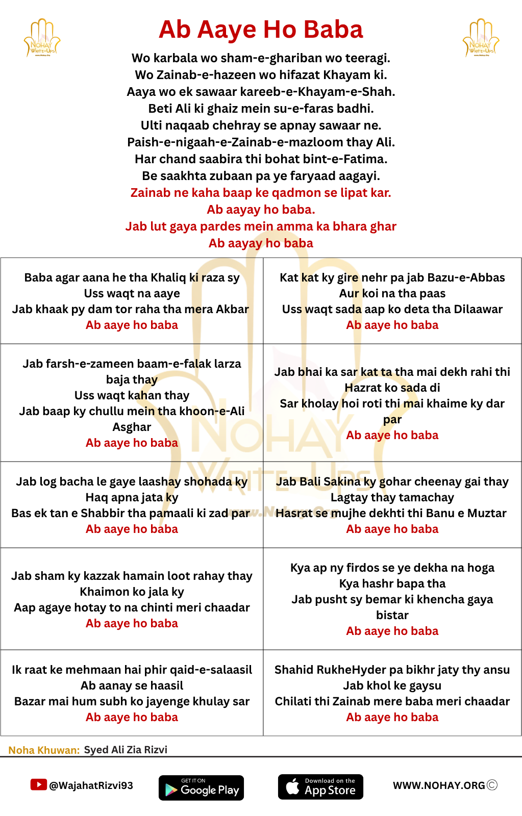 Ab Aye Ho Baba Zainab Ne Kaha | Syed Ali Zia Rizvi | Lyrics