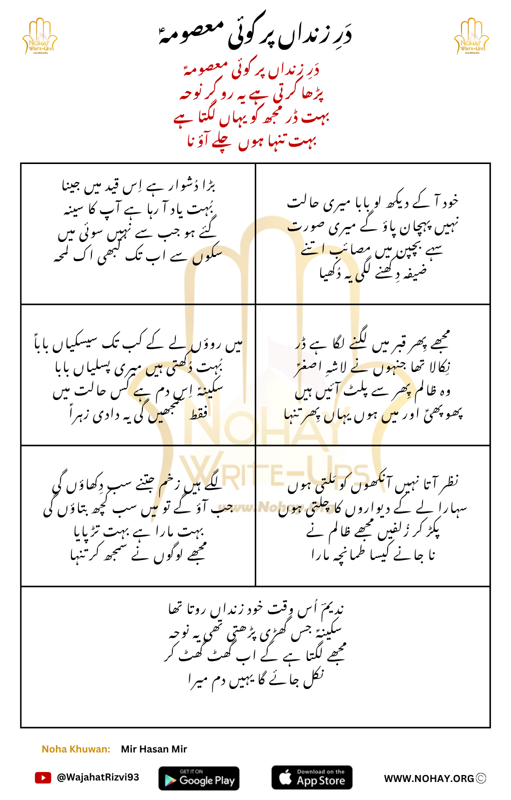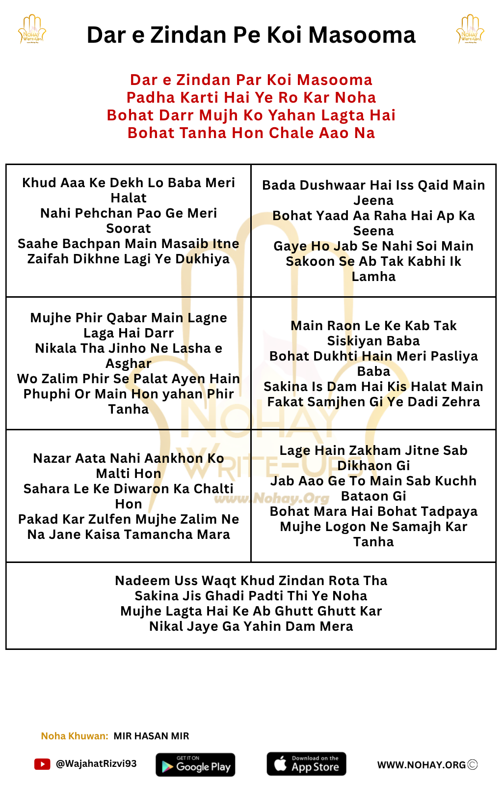Dar e Zindan Pe Koi Masooma | Mir Hasan Mir | Nohay 2025 | Muharram 2025/1447 | Lyrics | English | Urdu