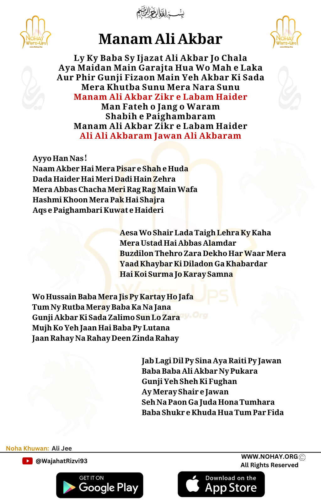 Manam Ali Akbar | Ali Jee | 2025 / 1447 | Lyrics | English | Urdu