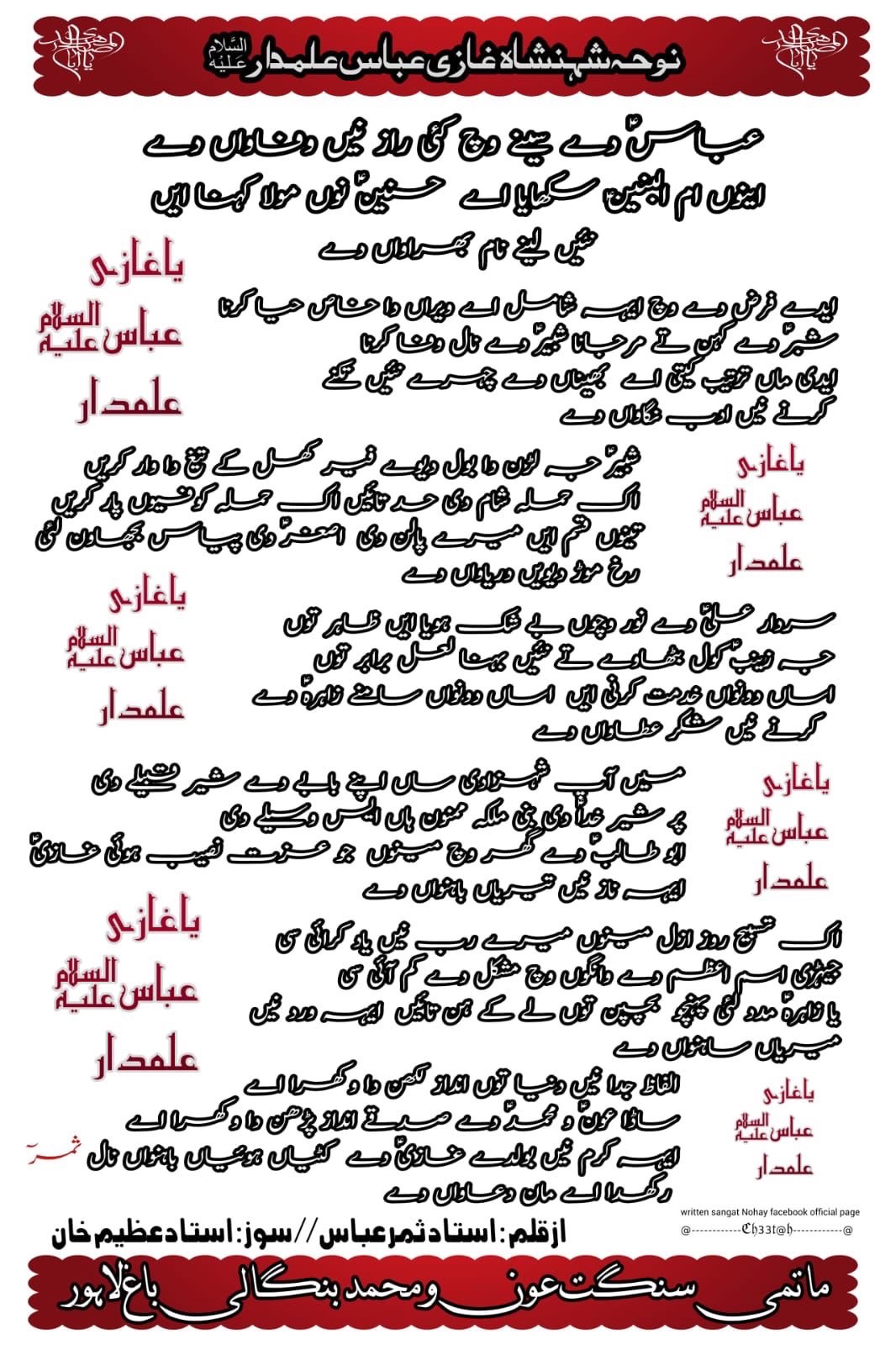 New Noha 2024 | Abbass as De Seenay Vich Kai Raz | Ghulaman e Aun o Muhammad Bangali Bagh | Lyrics